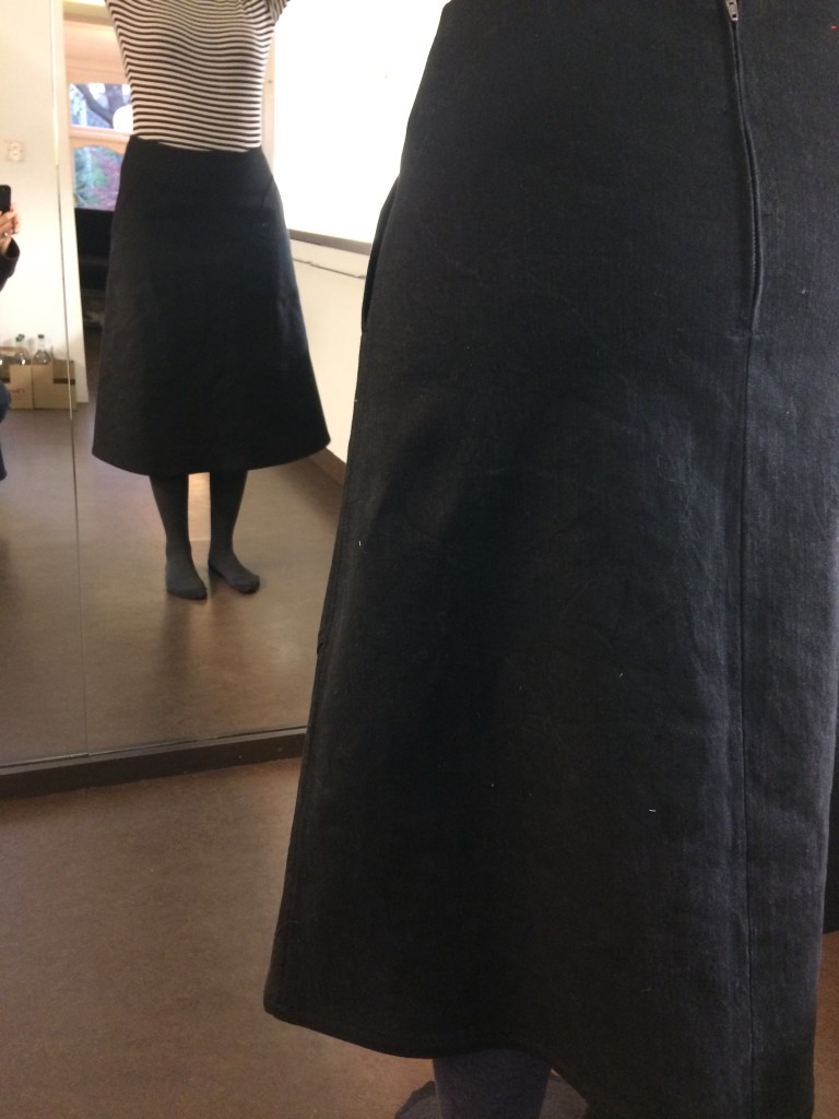 A.line, simple, back denim ‘wear it till it falls off’ skirt