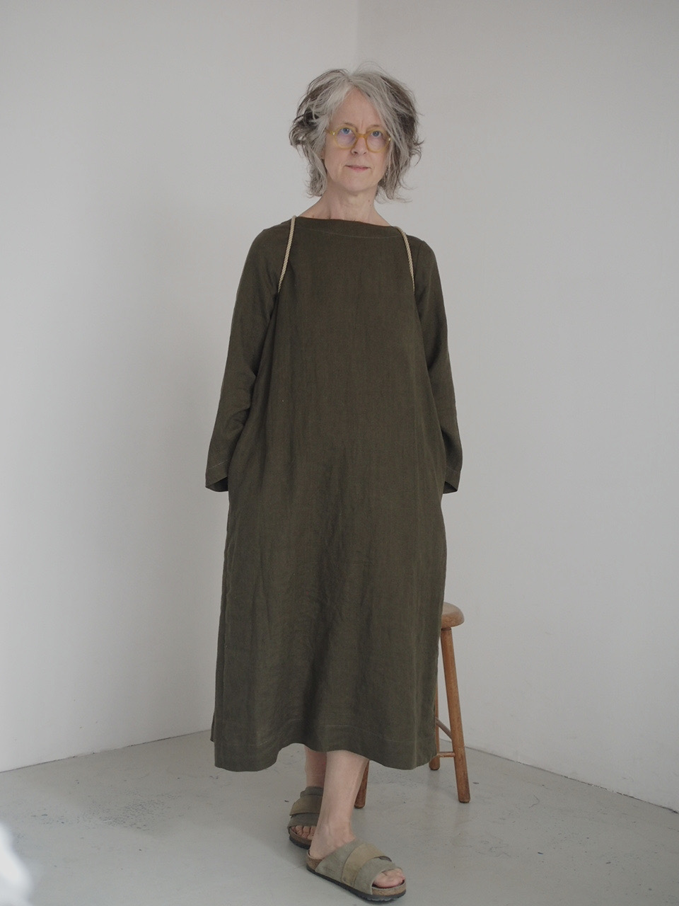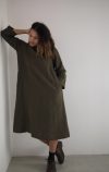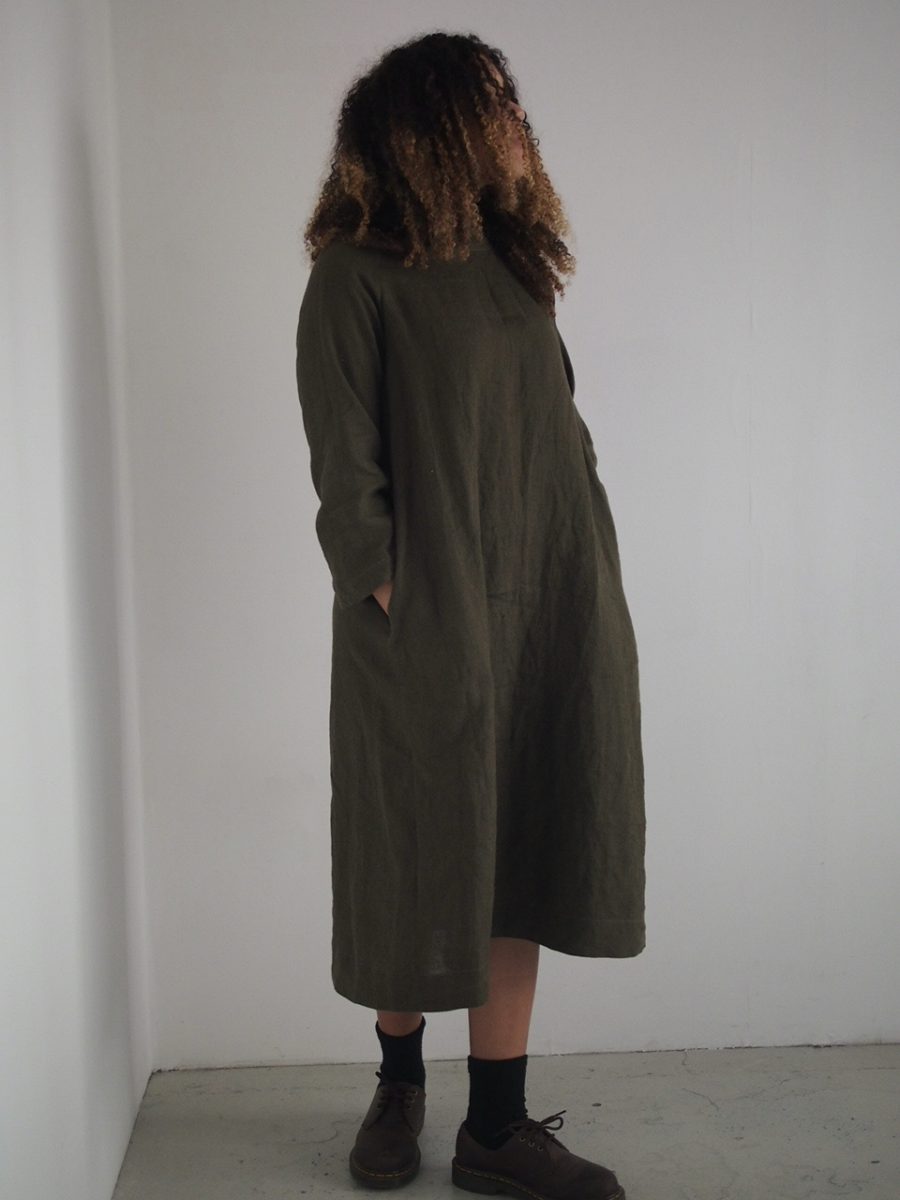 Mid calf length with bracelet length sleeves and pockets set into the side seam